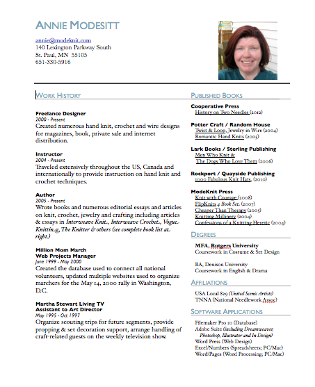 Wrote books and numerous pieces on knit, crochet, jewelry and crafting including articles & essays in Interweave Knit, Interweave Crochet, Vogue Knitting, The Knitter & others.