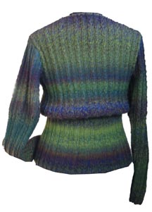 Gauge: 4.5 spi x 6 rpi using size 8 US/5mm 36” Circular in Bodice patt. Size 7 US/4.5mm used in ribbing.