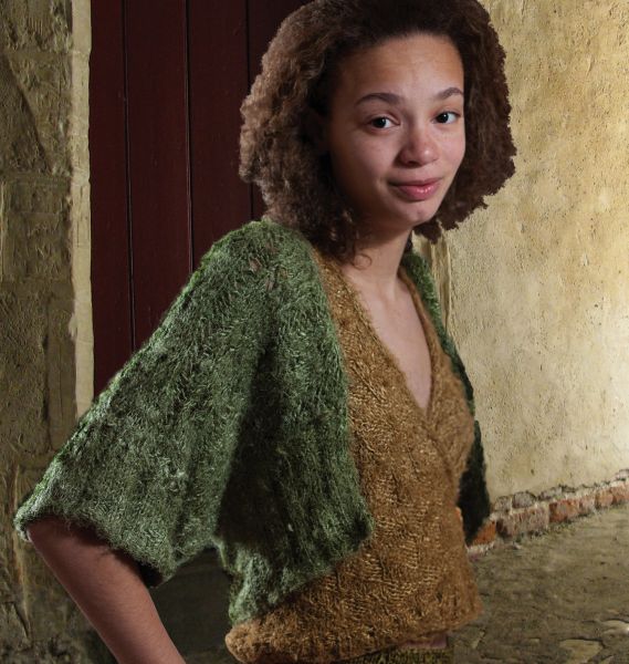 Based on a painting known as The Gripsholm Portrait, thought to be of Elizabeth I, the period doublet is updated as a dressy office cardigan which could also do double duty as evening wear.