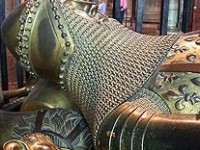 Approx 600-1100 6/0 green tone glass beads (chiton), 250 gold tone glass beads (belt and finishing), darning needle, waste yarn, size US G-6/4mm crochet hook for joining and belt.