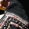 Notion Movable stitch markers or safety pins, darning needles, beading needle, 18 (19-1/2, 21, 22-1/2, 23-1/2)”/46 (49.5, 53.5, 57.5, 60) cm separating zipper (or length to match finished piece, it’s wisest to purchase this after garment is complete) black button thread, hook & eye (optional)