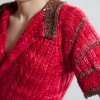 Based on a painting of Anne Boleyn, this crocheted jacket is a structured, shaped fit with a square neckline and center front zipper closure.