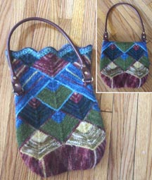 The piece is worked from the bottom up, felted, then a purchased handle is sewn on.